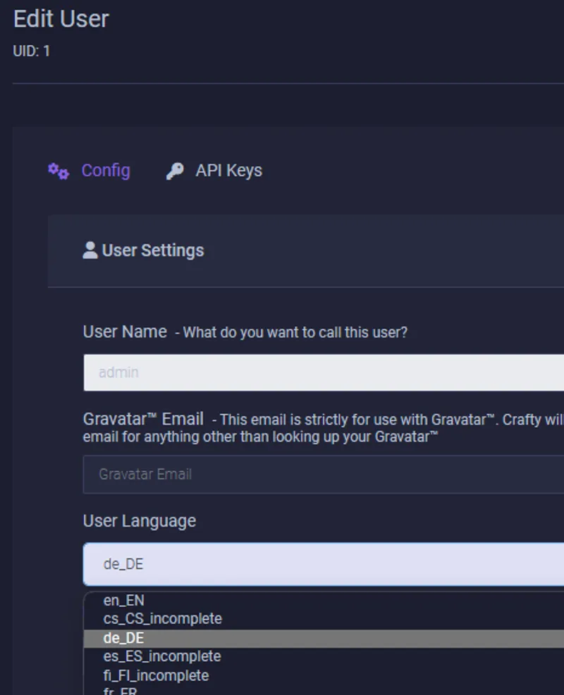 Crafty Controller Sprache ändern